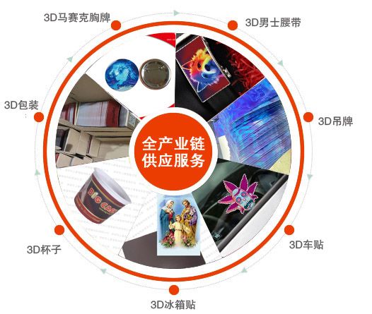 本公司的三維立體光柵(變圖)圖像產品、三維立體光柵板、生產設備及技術廣泛應用于廣告宣傳,3D立體印刷閃卡,三維立體光柵板燈箱,三維立體畫制作,3D立體印刷音像制品封面,立體印刷廣告禮品,立體印刷雜志封面,2D變幻光柵門票,立體光柵海報,立體光柵宣傳單; 立體光柵吊牌,3D立體印刷襯衫,外套,3D光柵印刷帽子,運動鞋,3D立體印刷錢包........